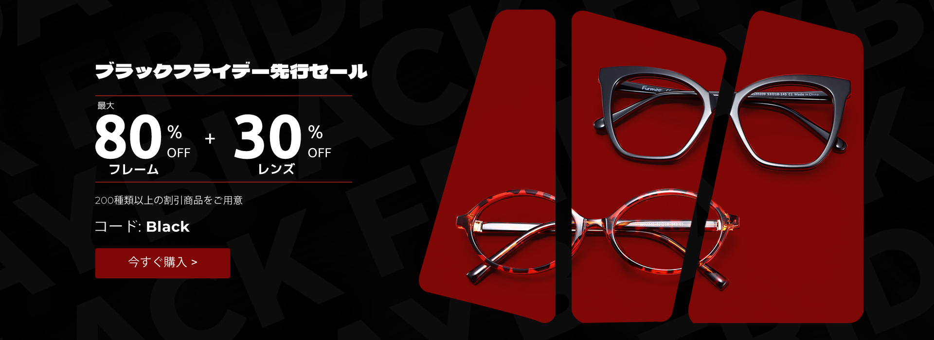 プラックフライデ一先行セール🖤フレームが最大80%OFF+レンズが30%OFF|コード: black