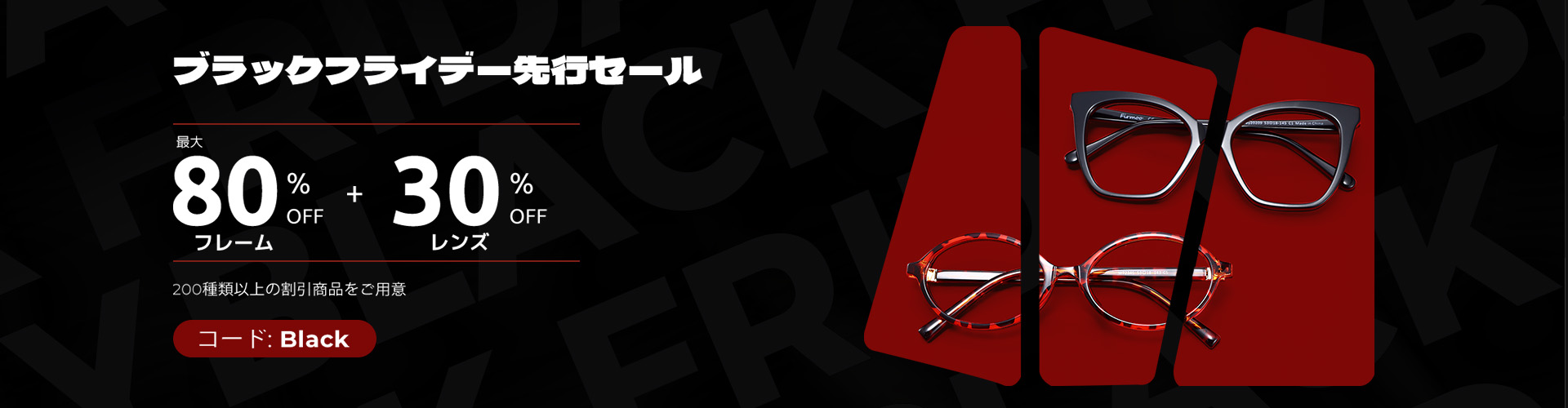 プラックフライデ一先行セール🖤フレームが最大80%OFF+レンズが30%OFF|コード: black