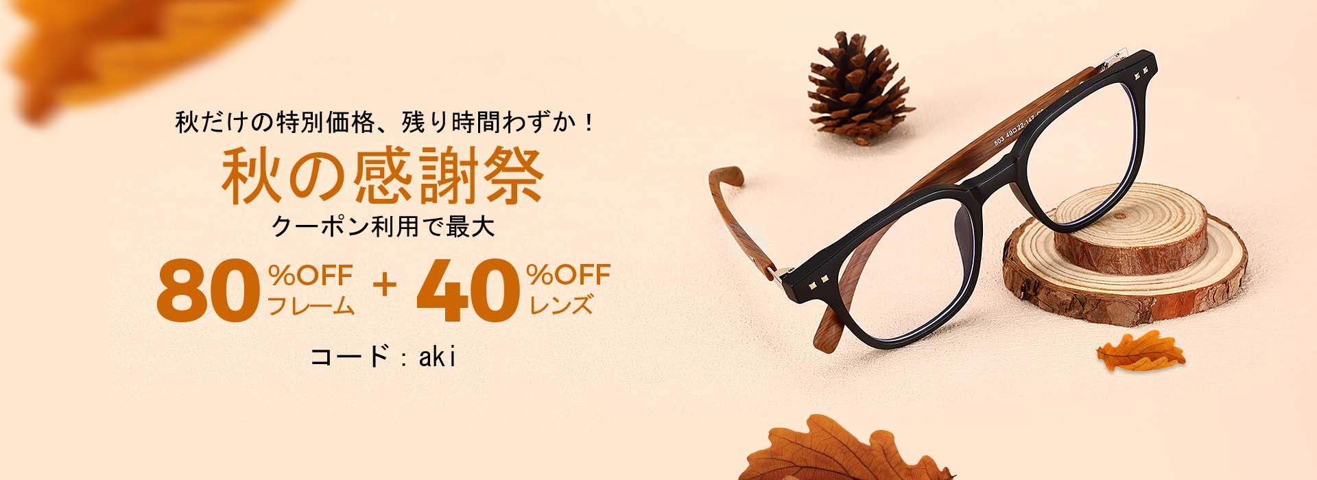 秋の感謝祭🔥フレームが最大80%OFF+レンズが40%OFF|コード: aki