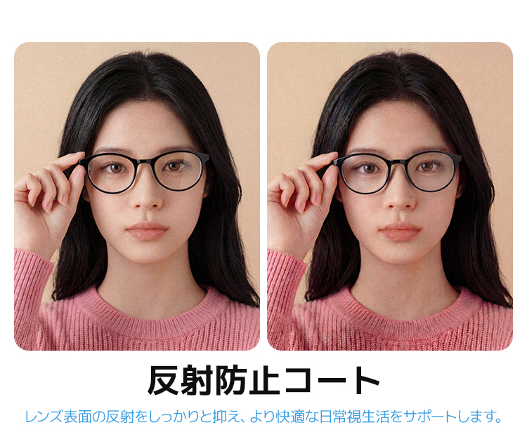 お気に入りのメガネをお選びの上、反射防止コートを追加選択します。より快適な着用感をお届けします✨
