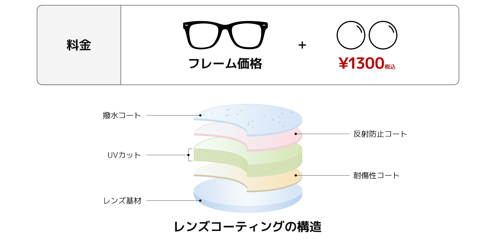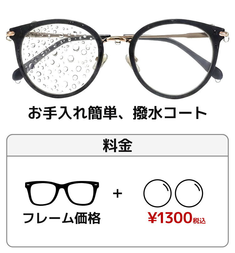 お気に入りのメガネをお選びの上、撥水コートを追加選択します。より快適な着用感をお届けします✨
